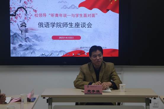 在交流中,党争胜副校长了解了同学们的生活和学习情况。得知参加会议的毕业生找到心仪的工作时,他表示非常高兴。他询问同学们就业是否与专业相关,帮助学生分析俄语专业就业形势,同时也对同学们提出了相关要求。他希望同学们要提早准备,夯实基础,才能在就业市场中把握机会,一跃而起。