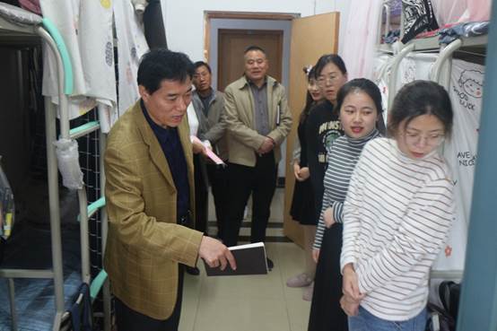 学生宿舍,与同学们进行了亲切交谈,并对学生生活、学习环境进行了细致了解,带去了学校对学生的关爱。
