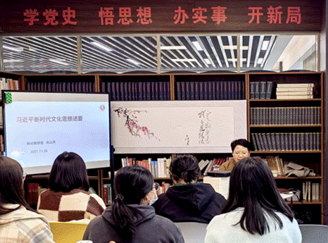 “中华优秀传统文化是中华民族的精神命脉,是涵养社会主义核心价值观的重要源泉,在实现中华民族伟大复兴的征程中,中华优秀传统文化是我们最深厚的文化软实力,为我们在世界文化激荡中站稳脚跟筑牢坚实根基。”为深入贯彻党的十九届六中全会精神,马克思主义学院主办了“习近平文化思想概述分享会”系列活动。11月26日下午,系列活动的第五场分享会在图书馆六楼马列书屋举行,学习主题为“习近平关于社会主义文化建设的重要论述”,由马克思主义学院杨云芳老师主持,九游会