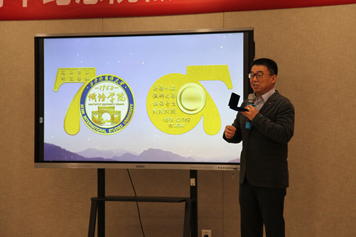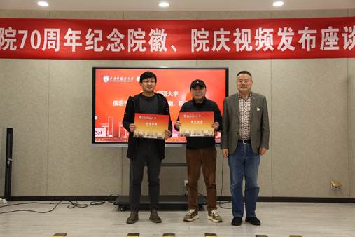 随后,院徽设计者唐汉向与会人员介绍了70周年院徽的设计理念。