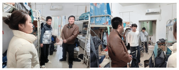 党委书记邢鸿岳带领各年级辅导员多次前往学生宿舍进行走访。