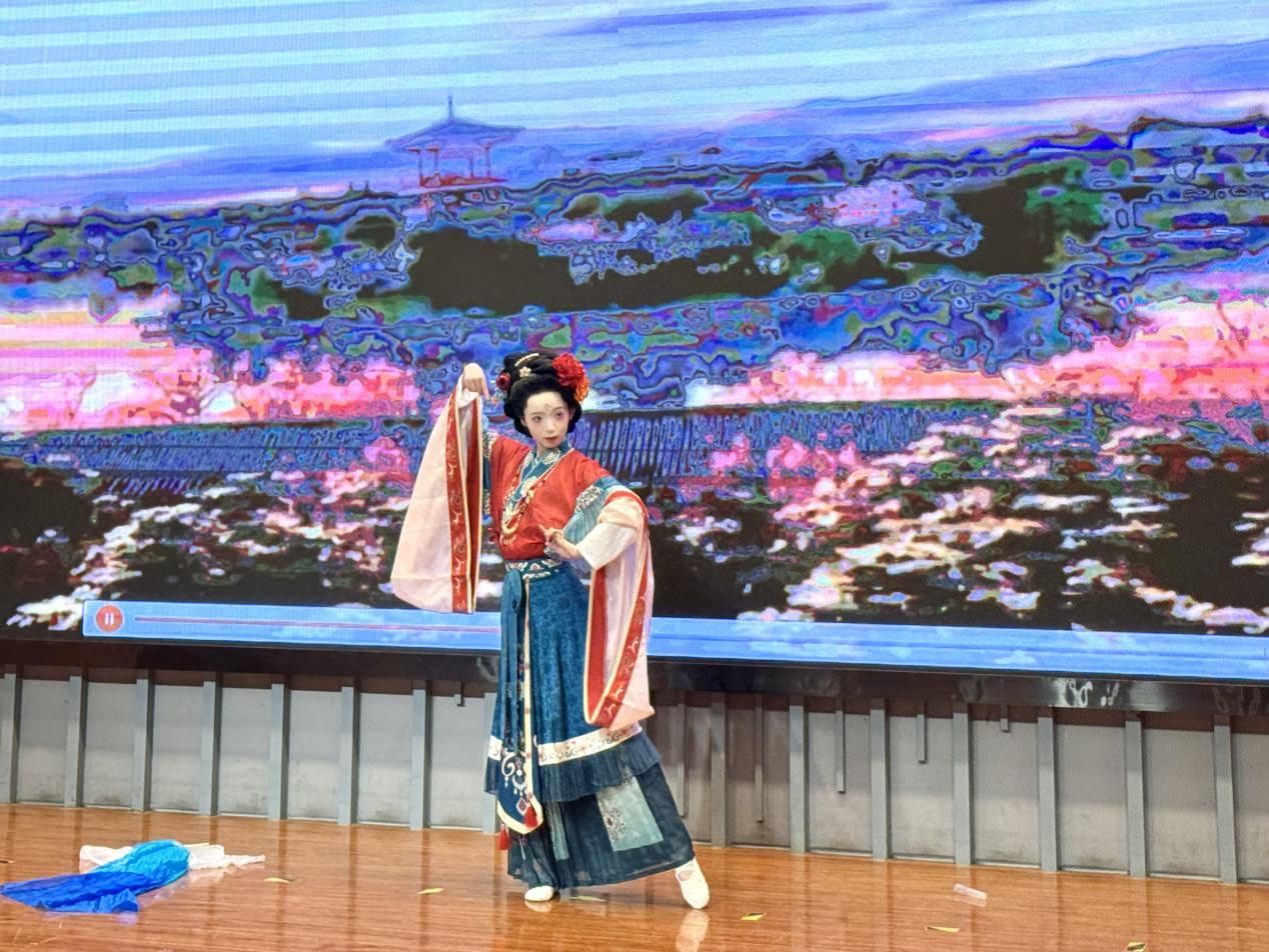 音乐类节目精彩频出,歌曲《我们的明天》唱出了对未来的憧憬,歌声悠扬动人节目《古筝弹奏与书法表演》更是别出心裁,将古典音乐与书法艺术完美结合,展现了传统文化的魅力。作者代表2024级向学院赠送书法作品,表达全体学生对学院栽培的感恩之情,教师代表上台表示感谢并送去谆谆寄语。