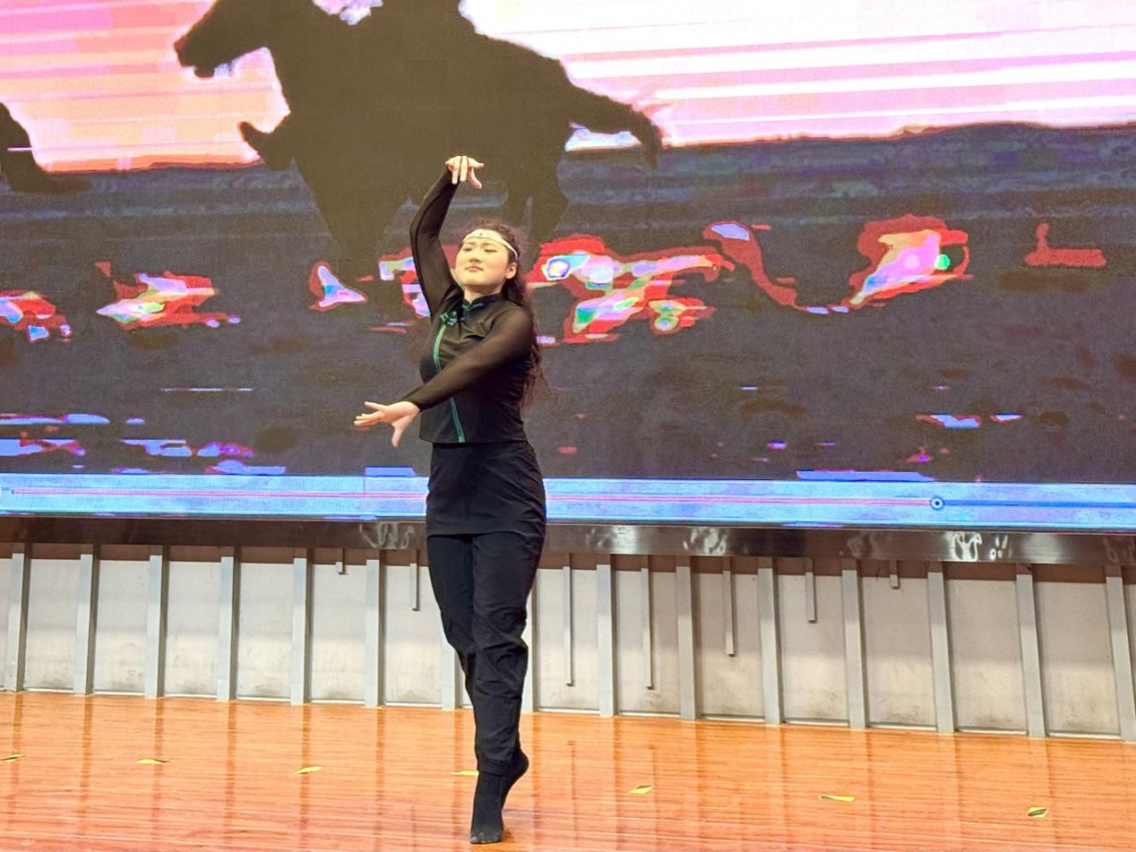 热情洋溢的开场舞蹈《Maniac》瞬间点燃了现场气氛紧接着塔吉克斯坦留学生带来中文独唱《男孩》,深情演唱赢得了观众的热烈掌声两位男生的吉他奏《喀秋莎》优美的伴奏和歌声带大家领略俄罗斯民谣的魅力,紧随其后的蒙古族舞蹈《黑马》一下将在场的观众拉到热情广袤的大草原,感受无尽的豪迈与自由。精彩的表演不时掀起阵阵喝彩与掌声。