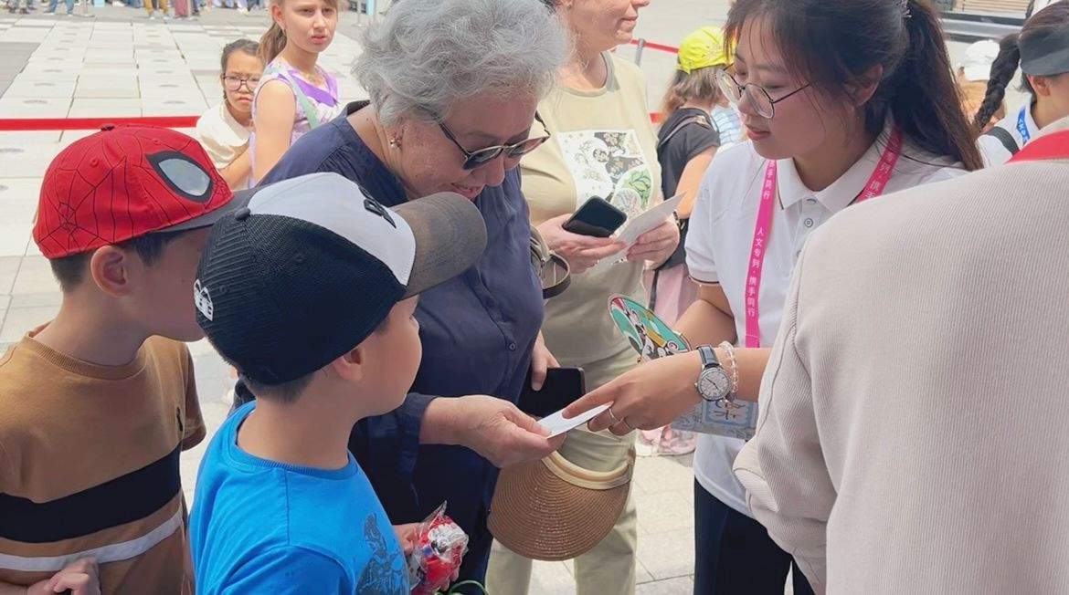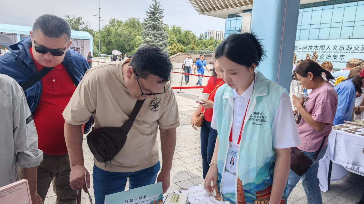 师生充分发挥专业优势,承担起随车翻译、活动协调等任务。在专列抵达阿拉木图后,志愿者团队立即投入到文化交流活动的筹备工作中,在特色集市交流活动中,志愿者向当地居民翻译讲解来自西安的珍贵非遗手工艺品,详细介绍茯茶文化的千年传承,并协助中医专家进行文化体验活动,帮助阿拉木图当地居民深入了解中国优秀传统文化。