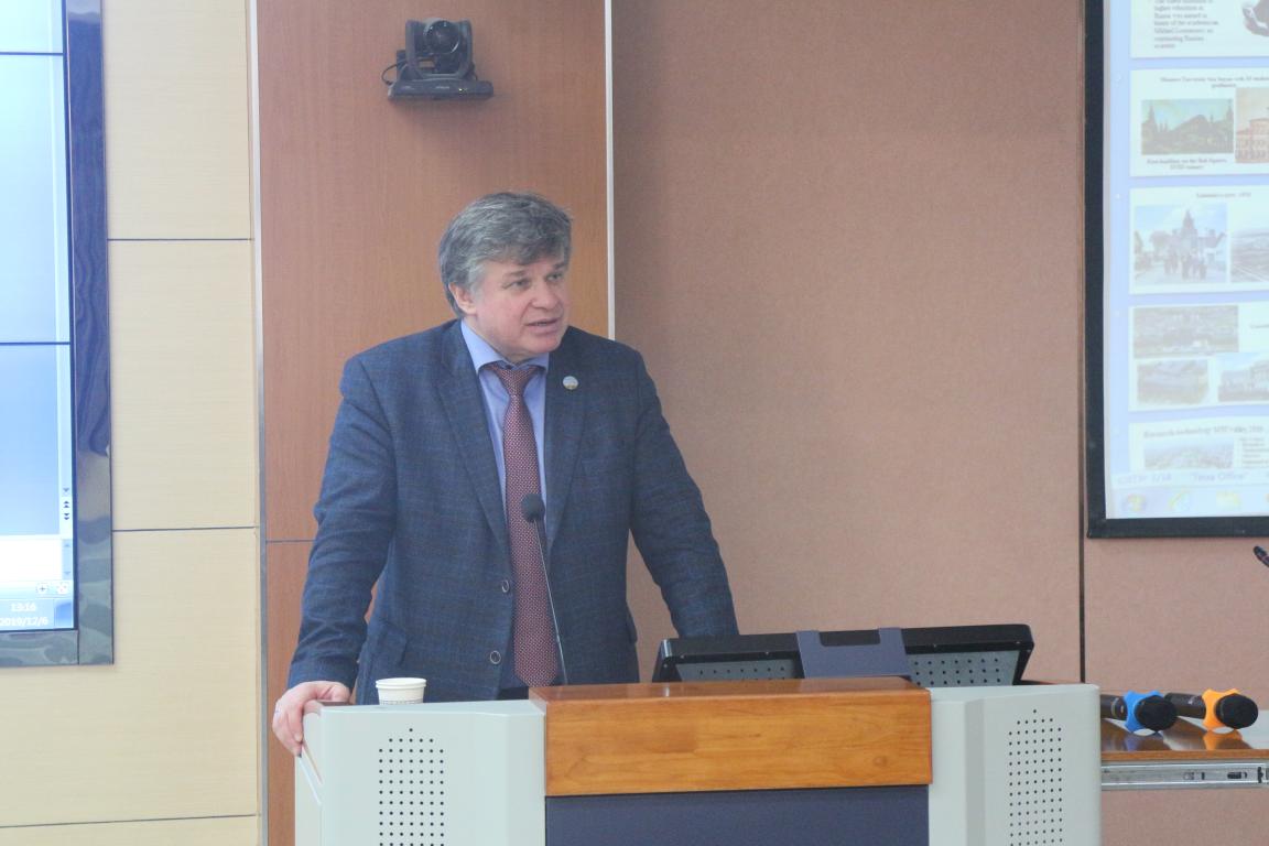之后,Частных В.В进行教学分享。他向大家介绍了莫斯科大学的办学历史,办学条件,专业设置和师资力量。随后,他谈到了深圳北理莫斯科大学的建立过程,教学模式以及俄语语言与文化学院的前世今生。他通过现场模拟课堂的形式,强调老师应在进教室时及时吸引学生的注意力,用生动有趣的语言或方式授课,把握并适时调整上课节奏,帮助学生们集中注意力。最后,他指出应在注重教学的同时,更加注重与同学的交流,了解同学对课堂教学的接受度,合理调整教学方法。Частных В.В全程与在座老师进行积极互动,现场气氛热烈。