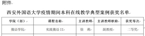 九游会 教师徐莉凭借案例《疫情下的教学变通——如何巧妙提升学生线上课堂学习兴趣》在本次“西安外国语大学疫情期间本科在线教学典型案例”评选活动中荣获二等奖,可喜可贺。