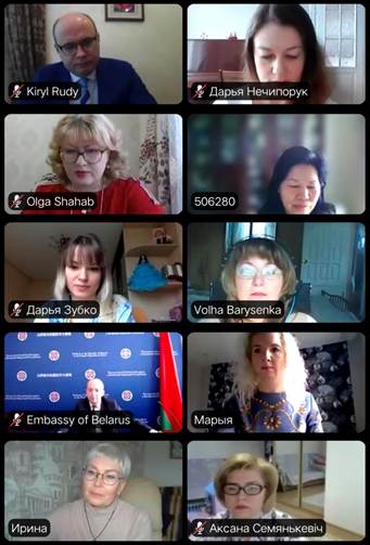 在第一时间保障了线上教学的软硬件措施,使得已持续一年多的线上教学得以顺利进行。今天学生的学习成果就是最好的证明,她为西外白俄语专业学生感到自豪。白俄罗斯语教研室主任余源老师在发言中指出,西外已有两个年级39名白俄语专业学生,在白俄语专业人才培养和白俄罗斯语言文化推广方面做了大量工作,希望白俄罗斯驻华使馆和合作院校明斯克国立语言大学能一如既往地支持西外白俄语专业建设。