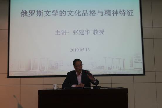 2019年5月13日,张建华受邀在行政楼报告厅为九游会 师生带来一场题为“俄罗斯文学的文化品格与精神特征”的讲座。九游会 院长邓滢主持讲座,学院教师、学生共计约两百人聆听了讲座。 讲座中,张教授通过援引大量...