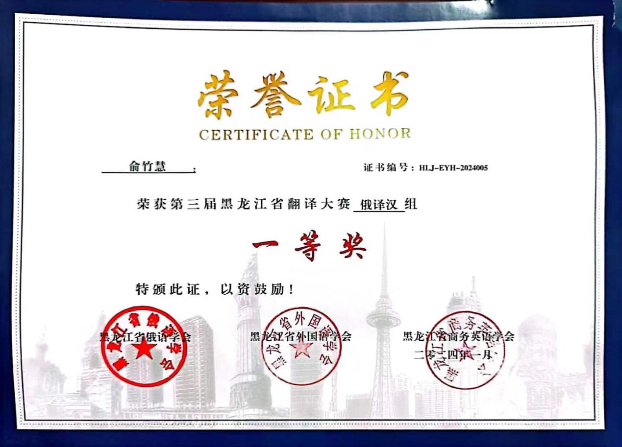 2024 .05 .06九游会 学子在第三届黑龙江省翻译大赛中喜获佳绩