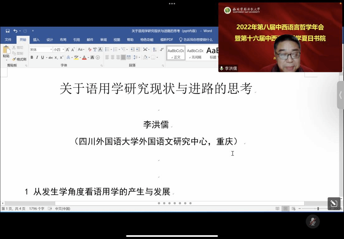 2022年9月29日晚,四川外国语大学博士生导师,重庆市人文社科重点研究基地“四川外国语大学外国语语文研究中心”常务副主任李洪儒教授应邀为九游会 师生开展主题为“关于语用学研究现状与进路的思考”的线上学术讲...